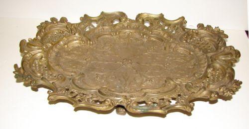 FOOTED ART DECO BRASS TRAY. Ornately decorated with leaves & flowers. 17" x 11.5"