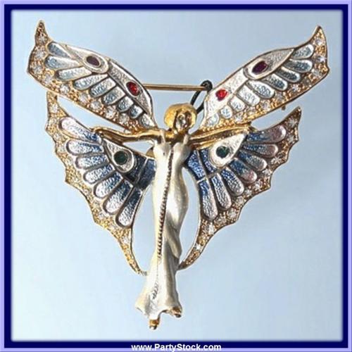 ERTE INSPIRED ART DECO FAIRY PIN BROOCH 24K GOLD & CRYSTAL