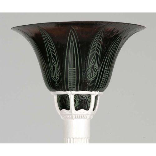ART DECO FLOOR LAMP, with acid cut shade, circa 1930, CONDITION REPORT: base repainted, some chipping at fitter end of shade,