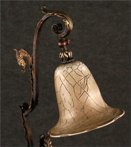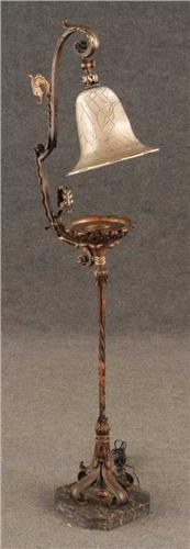 brass and iron with art glass <BR> shade, circa 1930 <BR> Condition: excellent <BR> shipping: this lot must be handled by 3rd party shipper. Do not contact us for estimates. We recommend: <BR> The UPS Store, Newtown, CT, store1324@theupsstore.com <BR> Vintage Transport (for furniture), Atlanta GA, info@vintagetransport.com <BR>