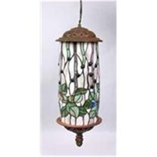 Hanging leaf jeweled lamp designed to be inegrated into house lighting system. Included ceiling mount with chain. Dimensions: 21.5"h, 7.5"daim.