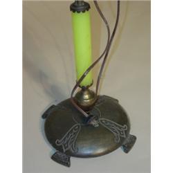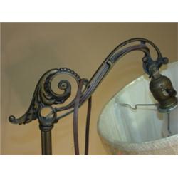 ART DECO BRASS & JADEITE FLOOR LAMP. 56" H