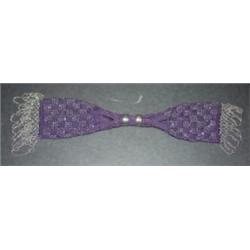 ART DECO LADIES' HANDKERCHIEF. Cloth fabric is decorated with beads and fringe. Two rings surround fabric at center. 12.5" L