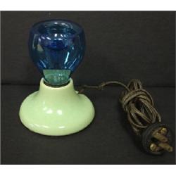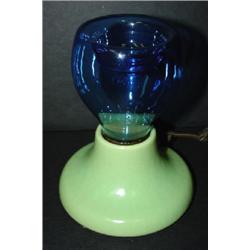 ART DECO PERFUME LAMP. Electrified. Cobalt blue glass top with jadeite base. Base shows signs of slight crazing. 4.5” H