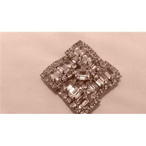 ART DECO RHODIUM-PLATED W/RECTANGULAR CRYSTAL CUT FAUX AND ROUND CLEAR RHINESTONES