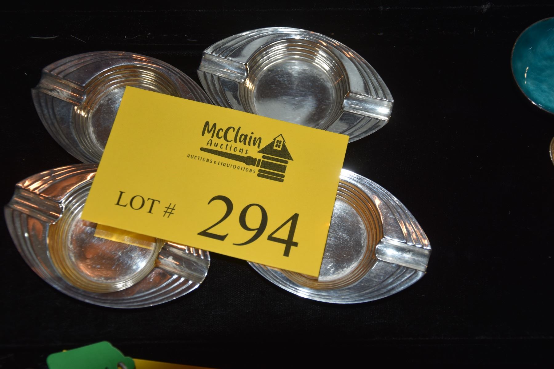 ART DECO STERLING SILVER ASHTRAYS, INTERNATIONAL SILVER CO., MERIDEN, CONNECTICUT (125 G)
