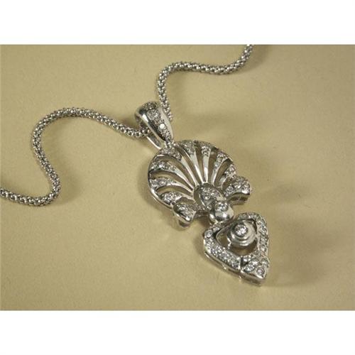 PENDANT WITH CHAIN: Delightful Art Deco style 14k white gold pendant set with round cut diamonds with a chain. The diamonds measure approximately 1.00 ctw, have SI1 clarity and H to I color. No appraisal is included with this lot.