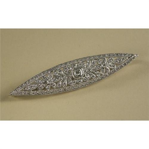 BROOCH: Intricate 18 kt white gold brooch set with diamonds in an Art Deco pattern. The diamonds measure approximately 1.25 ctw, have VS2 clarity and G to H color. No appraisal is included with this lot.