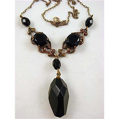 <tr><td>Title:ART Deco 14KGF FRENCH Jet BLACK Glass LAVELIER </td></tr>