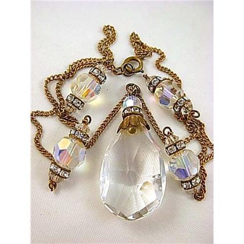 A fabulous vintage art deco period aurora borealis faceted crystal and channel set rhinestone flapper necklace in excellent condition. It has a 2" crystal drop, and measures 30" long from end to end. A stunning item that would grace any collection!