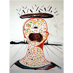 ARTIST: Salvador Dali TITLE: Hommage a Quevedo MEDIUM: original engraving with pochoir on Richard de Bas paper YEAR: 1975 SIZE: 21 x 14 inches (imag