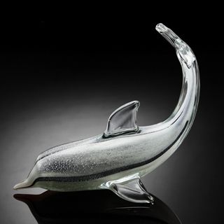 ART GLASS BLACK & CLEAR DOLPHIN - 6"H X 8"W X 4.5"D - HAND CRAFTED