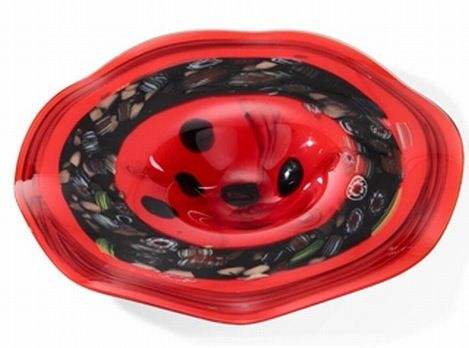 ART GLASS BOWL - UNIQUELY HAND CRAFTED - 3.5"H x 15.5" DIAMETER - RED & BLACK TONES
