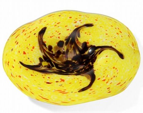 ART GLASS BOWL - UNIQUELY HAND CRAFTED - 3.5"H x 15.5" DIAMETER - YELLOW & BROWN TONES