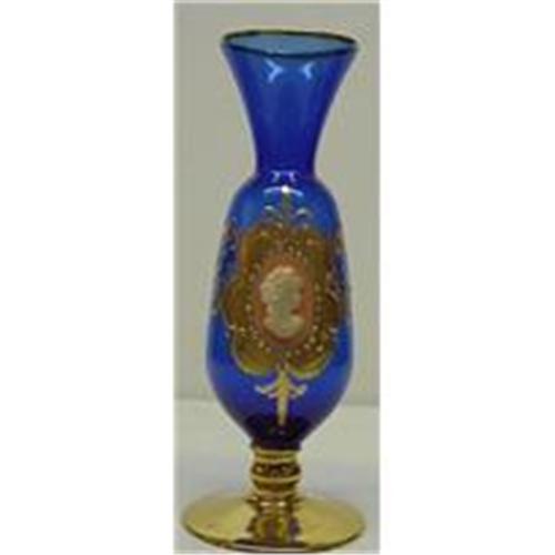 BEAUTIFUL OLD VASE, MADE FROM COBALT BLUE GLASS, HAND DECORATED WITH HEAVY GOLD AND DISPLAYING LOVELY CAMEO DEPICTING BEAUTIFUL YOUNG LADY.VERY UNIQUE AND EXQUISITE! IT STILL HAS ORIGINAL BIRKS STICKER AND NUMBER ON IT.(BIRKS WAS MOST EXPENSIVE AND WELL KNOWN FOR QUALITY CANADIAN STORE-S)IT STANDS ABOUT 6 1/4" , - US BUYER TO PAY 8.00 PLUS INSURANCE.THANKS!