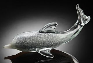 ART GLASS DOLPHIN - HAND CRAFTED - 3.5"H X 6.5"W X 3.5:"D