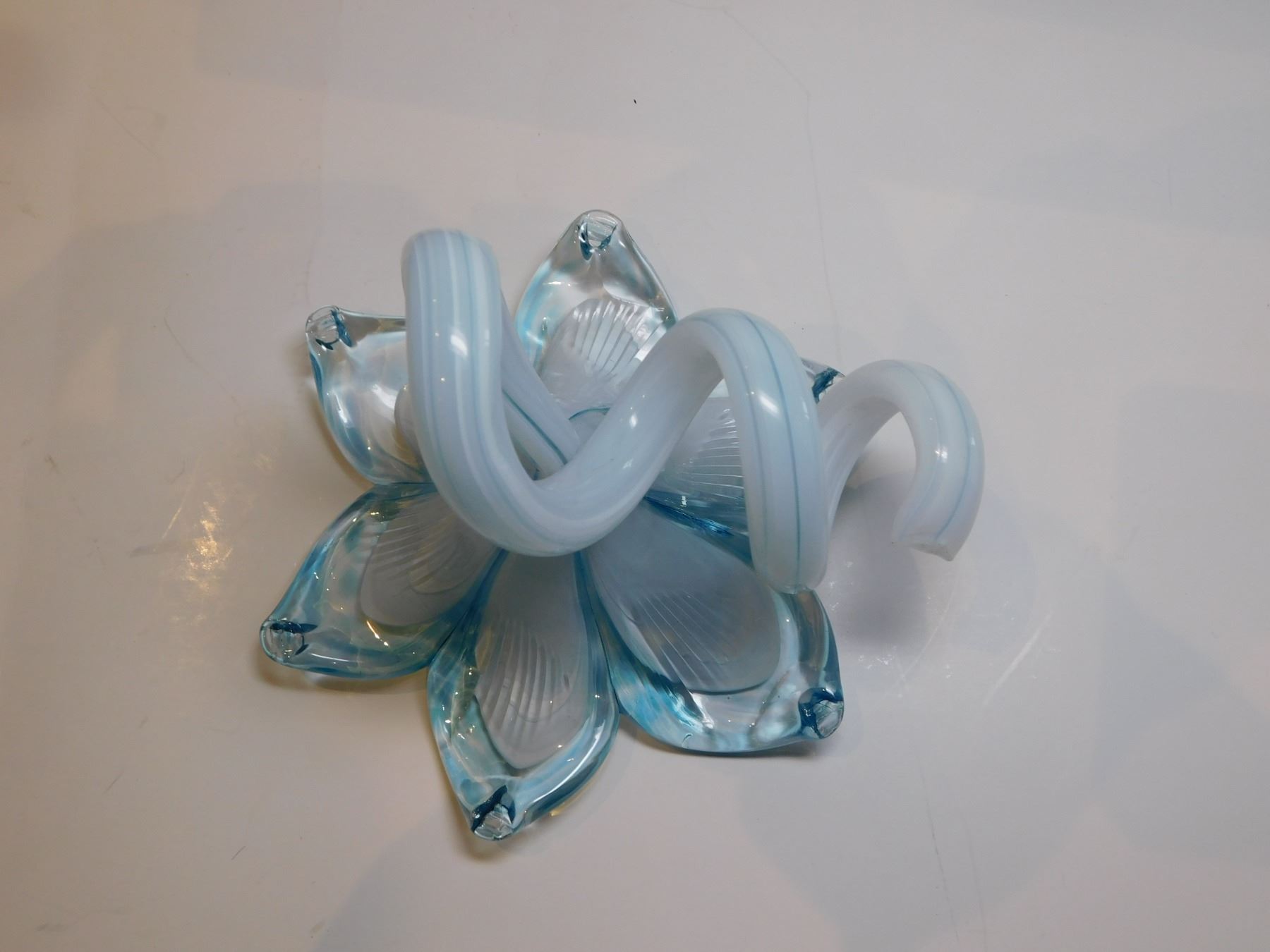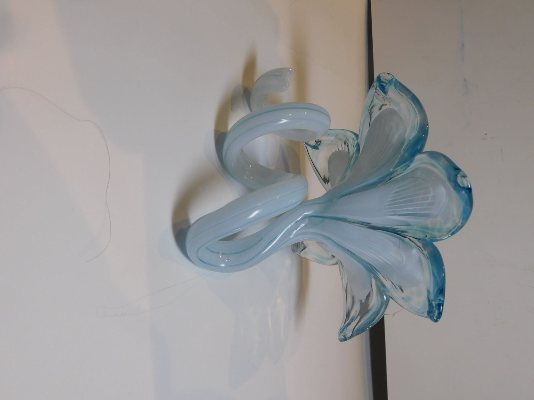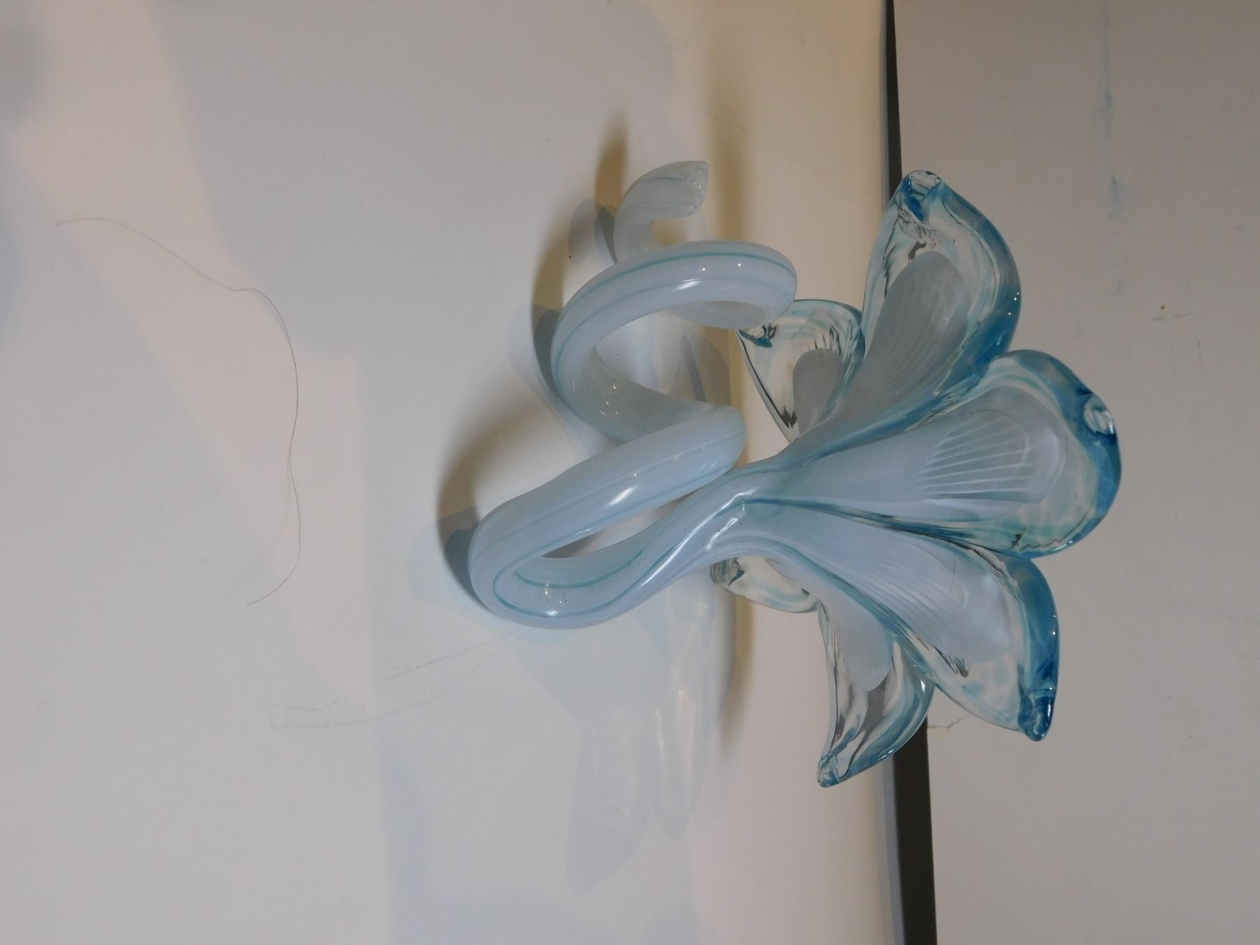 ART GLASS FLOWER, MURANO STYLE LILY, BLUE
