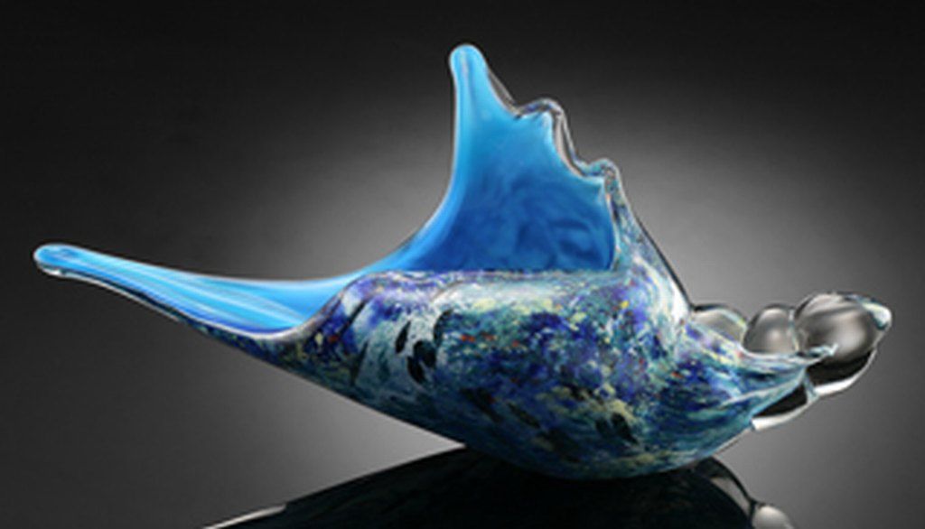 BEAUTIFUL BLUE ART GLASS MUREX SHELL - 6"H 11"W 4"D - HAND CRAFTED