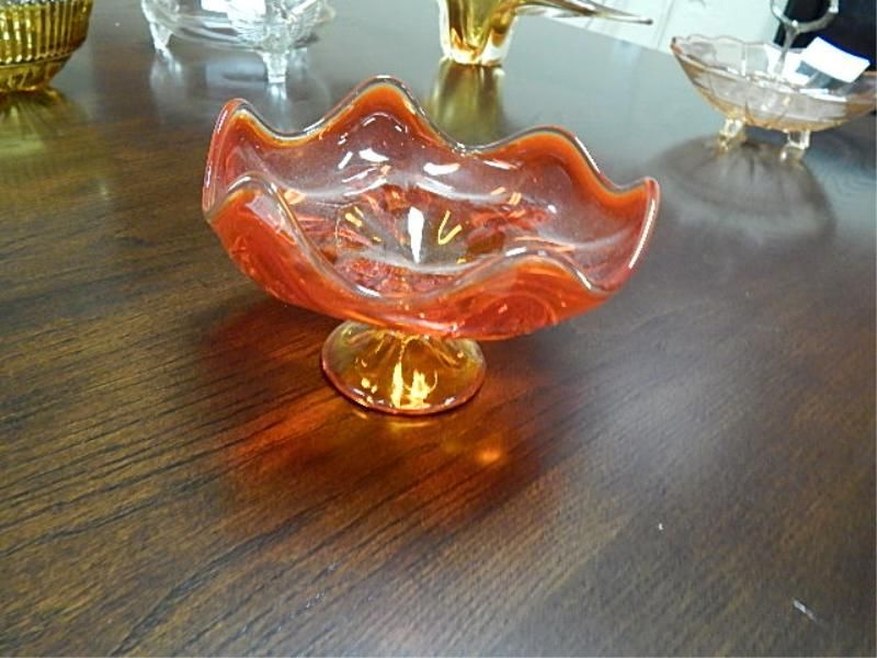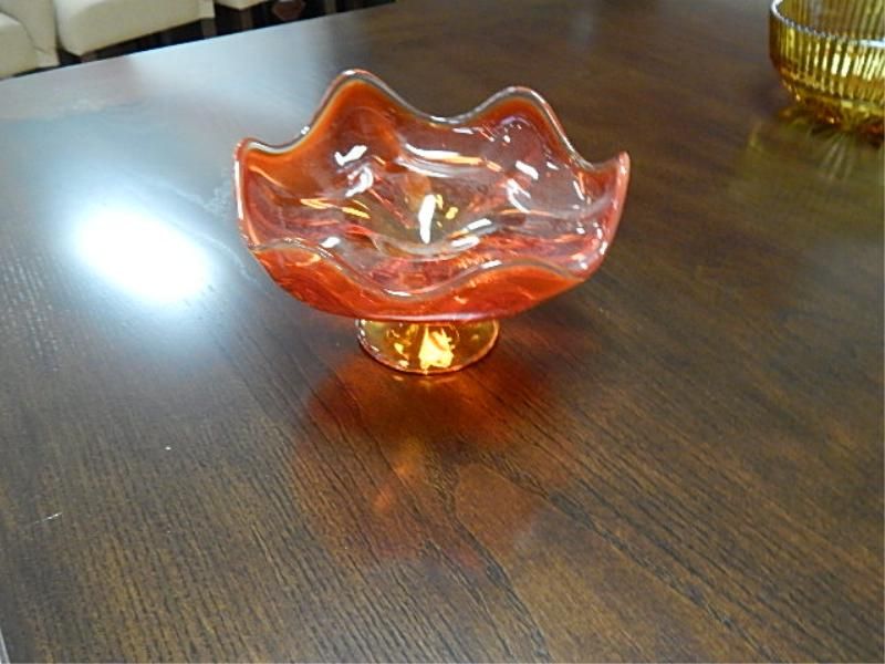 ART GLASS - ORANGE GLASS ON PEDESTAL
