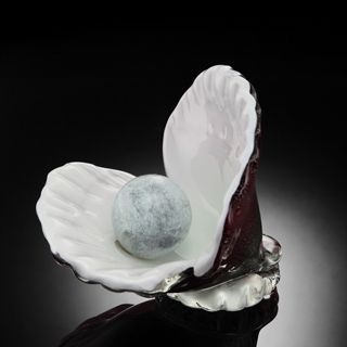 ART GLASS OYSTER SHELL WITH PEARL - 6"H x 6.5"W x 5.5"D - HAND CRAFTED