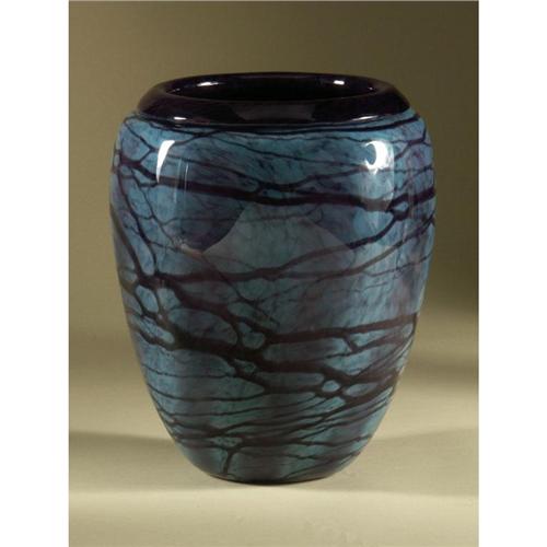 ART GLASS: Signature unclear ovoid form wide mouth vase with black rim and blue-green body. 11'' H