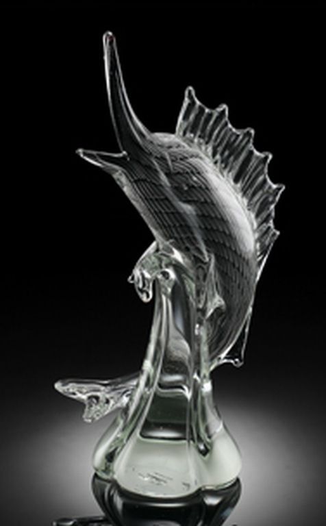 BEAUTIFUL ART GLASS SAILFISH - 15.5"H 10.5"W 5"D - HAND CRAFTED
