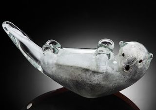 ART GLASS SEA OTTER - 3.5"H X 8.5"W X 3"D - HAND CRAFTED