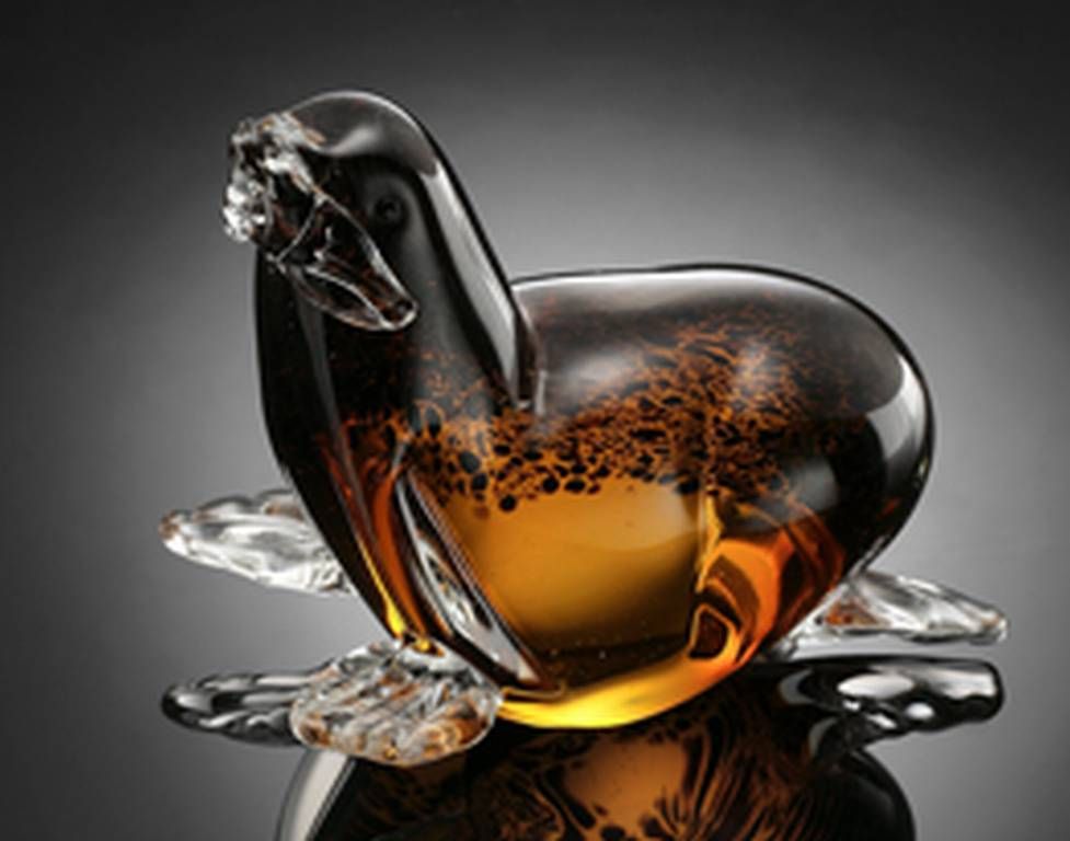 BEAUTIFUL ART GLASS SEAL - 5.5"H 6"W 5"D - HAND CRAFTED