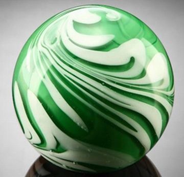 GREEN SWIRL - ART GLASS SPHERE / PAPERWEIGHT - HAND CRAFTED - 4" DIAMETER