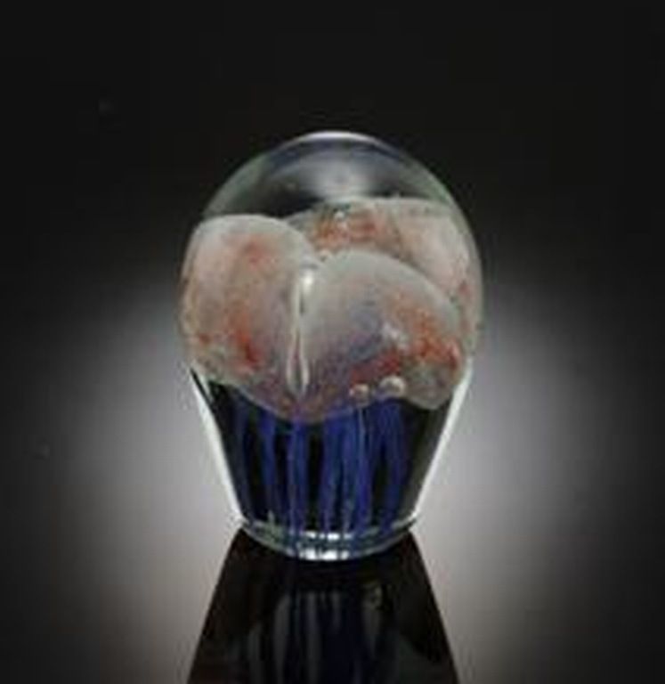 BEAUTIFUL TRIPLE ART GLASS JELLYFISH - GLOW IN THE DARK - 4.5"H - HAND CRAFTED