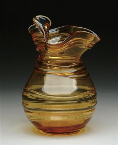 ART GLASS VASE MADE BY BOB CROOKS. Nice art glass vase features amber glass with applied threading and crystal edge. Signed "Bob Crooks Dudley Glass Festival 1997" and accompanied with certificate of authenticity. SIZE: 9-1/2 in. t. CONDITION: Very good to excellent. Collection of Johanna and Sean Billings 5-60988