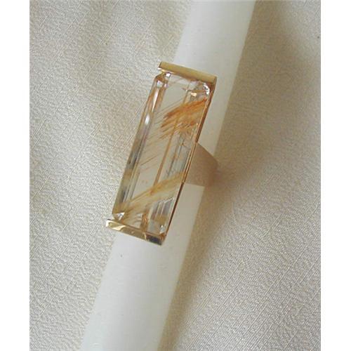 ART MODERNE 18K AND GEM RUTILATED QUARTZ RING ... WITH A 1 1/2" LONG QUARTZ STONE IN A HEAVY YELLOW GOLD HIGH POLISH SETTING / This ring comes with a 2003 Lux Bond & Green appraisal. STAMPED 18K ~ This is truly a one-of-a-kind gem!