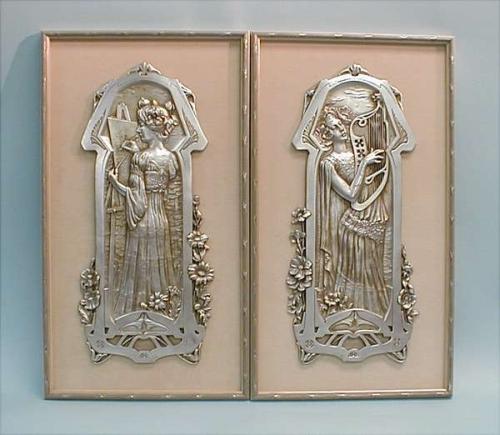 ART NOUVEAU - A pair of framed silvered plaqu...