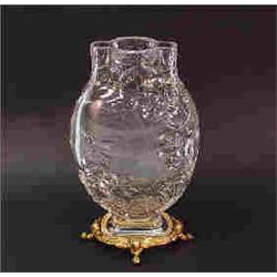 ART NOUVEAU - BACCARAT, FRANCE. A crystal vase mounted on gilt bronze base. The flask shaped vase intaglio carved with cherry fruit and leaves. 12 3/4" high. Circa 1880. 5000-6000