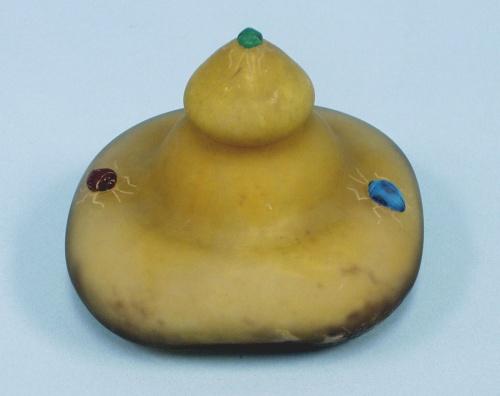 ART NOUVEAU - DAUM, NANCY - A rare French pate de verre art glass inkwell with applied colourful bugs. Signed. 3 3/4" high, 4" x 4" wide. Circa 1900.