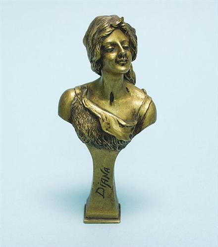 ART NOUVEAU - E. FISTI. A turn of the century French bronze seal. Sculpted in form of a head of Diana with a crescent hair ornament in her long hair. 5 1/2" high. Circa 1900.