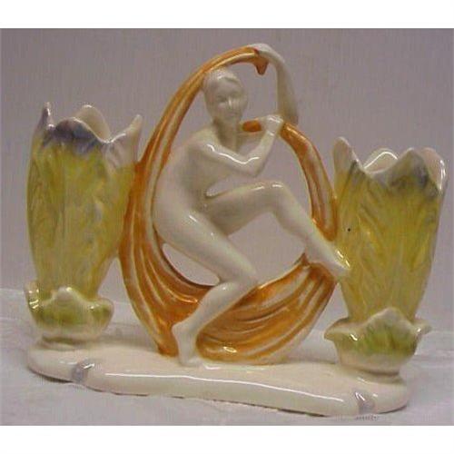 GORGEOUS AND IN A WAY VERY UNIQUE, DOUBLE VASE WITH YOUNG GIRL IN THE CENTER, THIS IS VERY OLD PIECE AND ONLY MARKINGS ON THE UNDERSIDE ARE: 2 XX AND NUMBER 6, ON THE SIDE OF THE BASE THERE IS IMPRESSED MARK:S650#B, EXCELLENT CONDITION BUT FOR A VERY OLD SURFACE CHIP (Ttop of her hand), and there is a stress very thin crack on the orange piece above extended leg, Otherwise fine, THE VASE STANDS ABOUT 6 1/2" HIGH X 7 1/2 WIDE, US BUYER TO PAY 8.00 FOR SHIPPING PLUS INSURANCE.THANK YOU.