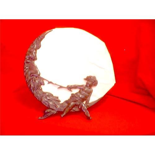 THIS 19th CT BEAUTIFUL ROUND ART NOUVEAU MIRROR IS MADE OUT OF PEWTER OR WHITE METAL WITH VERY NICE OF BRONZE PETINA(BROWN)IN VERY GOOD CONDITION WITH ORIGINAL BEVELED GLASS MIRROR AND VERY NICE SUBJECT(A HALF NUD KID PULLING THE SUN)(THE SUN IS A FACE OF A HANDSOME MAN WITH BEARD).
