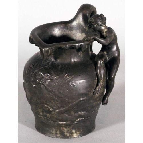 ART NOUVEAU PEWTER EWER after Charles Perron marked Etain Garanti, 7" high CONDITION REPORT: excellent- with light scuffs. PACKING AND SHIPPING: offered by Fairfield Auction to points within Continental U.S.A. and excluding insurance (which will be required and added) $20.