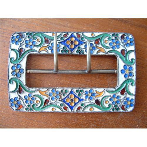 </font></strong>FINE RUSSIAN ENAMEL BUCKLE. NO HALLMARKS. TEST FOR SILVER LESS THAN STERLING.WEIGHT 46.0g OR 29.6DWT</font>