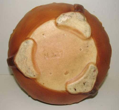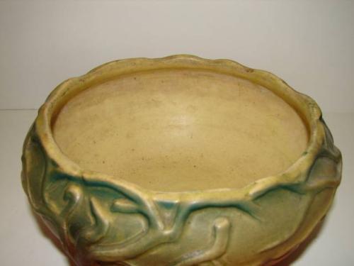 ART POTTERY BOWL. Marked on bottom "N227". Relief tree and branch decoration around body. 3.5" H, 6" Dia. at opening.
