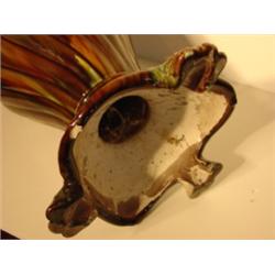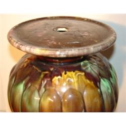 ART POTTERY PEDESTAL. Unmarked. Missing pot. Green & brown glaze. Good overall condition. 17" H