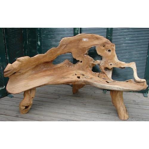 <tr><td>Title:ART TEAK TREE ROOT PRIMITIVE GARDEN BENCH</td></tr>