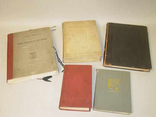 ART & THE HUMAN BODY. A Group of 5 Volumes as Listed. Hard Cover. Ex-Library. Fair to Good Condition. ***Anatomie Artistique - Description Des Formes Exterieures Du Corps Humain by Paul Richer (1910) Paris: Plon-Nourrit. Folio, complete with 110 plates (some with tissue overlays), text in French, unbound as issued in original portfolio with ties. Some edge chips, occasional paper repair. ***Court Beauties of the Reign of Charles II from the Originals in the Royal Gallery at Windsor by Sir Peter Lely and Others - Presentation Edition (circa 1840) London: John Camden Hotten. Folio, leather bound, raised bands on spine, engravings throughout. Front cover detached, binding tight. ***Beauty Illustrated by an Analysis and Classification of Beauty in Woman by Alexander Walker (1852) London: Henry G. Bohn. 4to in a library binding, 17 (of 23) tinted lithographs with tissue guards, binding & hinges tight. ***Man in Art - Studies in Religious and Historical Art, Portrait and Genre by Philip Gilbert Hamerton (1892) 1st Edition, London: Macmillan & Co. Folio, deckled page edges, original cloth binding, complete with 46 engravings, mezzotints, photogravures, hyalography, etchings and wood engravings with descriptive tissue guards. Front cover loose, upper backstrip peeling. ***Kama Shilpa - A Study of Indian Sculpture Depicting Love in Action by Francis Leeson (1965) Bombay: D.B. Taraporevala Sons & Co. 8vo in original illustrated cloth, b/w photographs throughout, upper backstrip peeling, back hinge starting.
