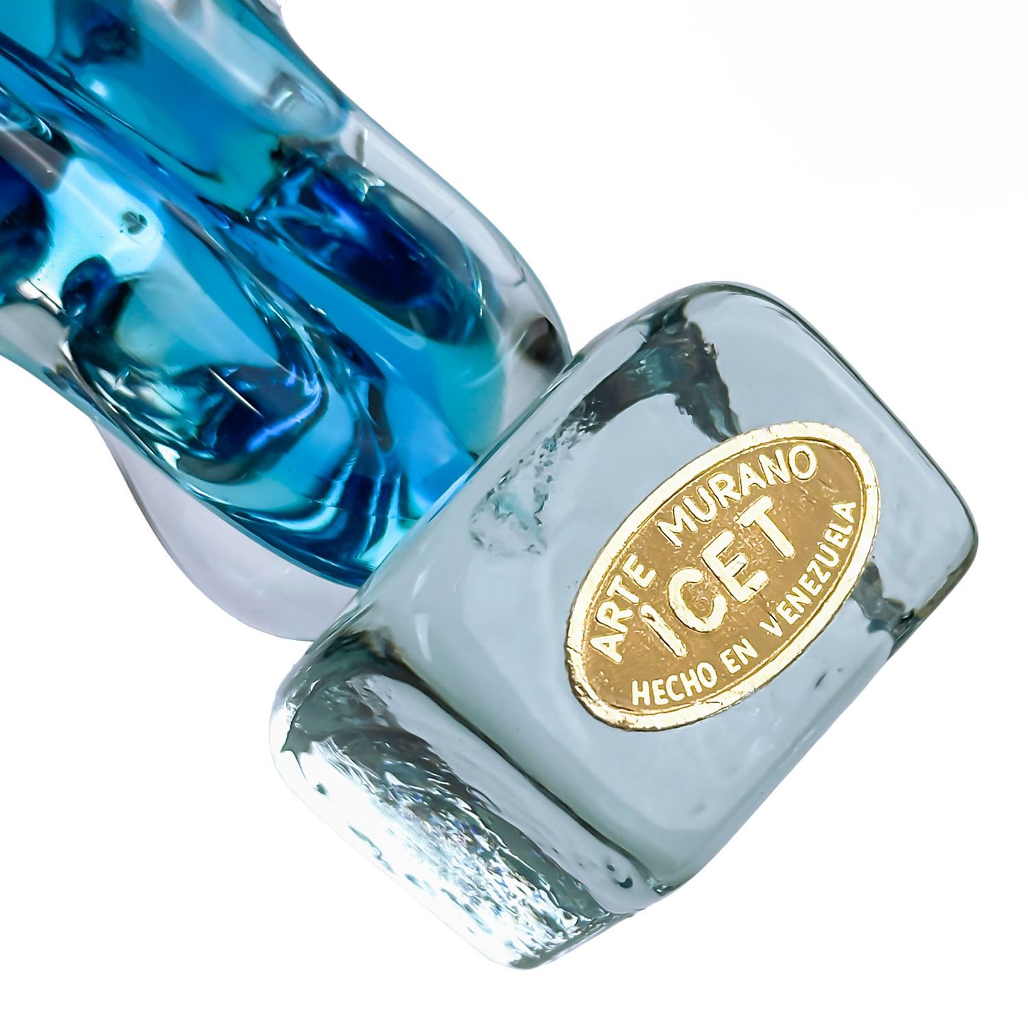 #8558 - VINTAGE BLOWN ART GLASS ELEPHANT FIGURINE SCULPTURE - CLEAR TO BLUE GLASS. HECHO EN (MADE IN) VENEZUELA. HOME OR OFFICE DECOR PAPERWEIGHT FIGURINE. MEASURES APPROXIMATELY 1.375” (3.5 CM) SQUARE BASE AND STANDS 5” (13 CM) HIGH