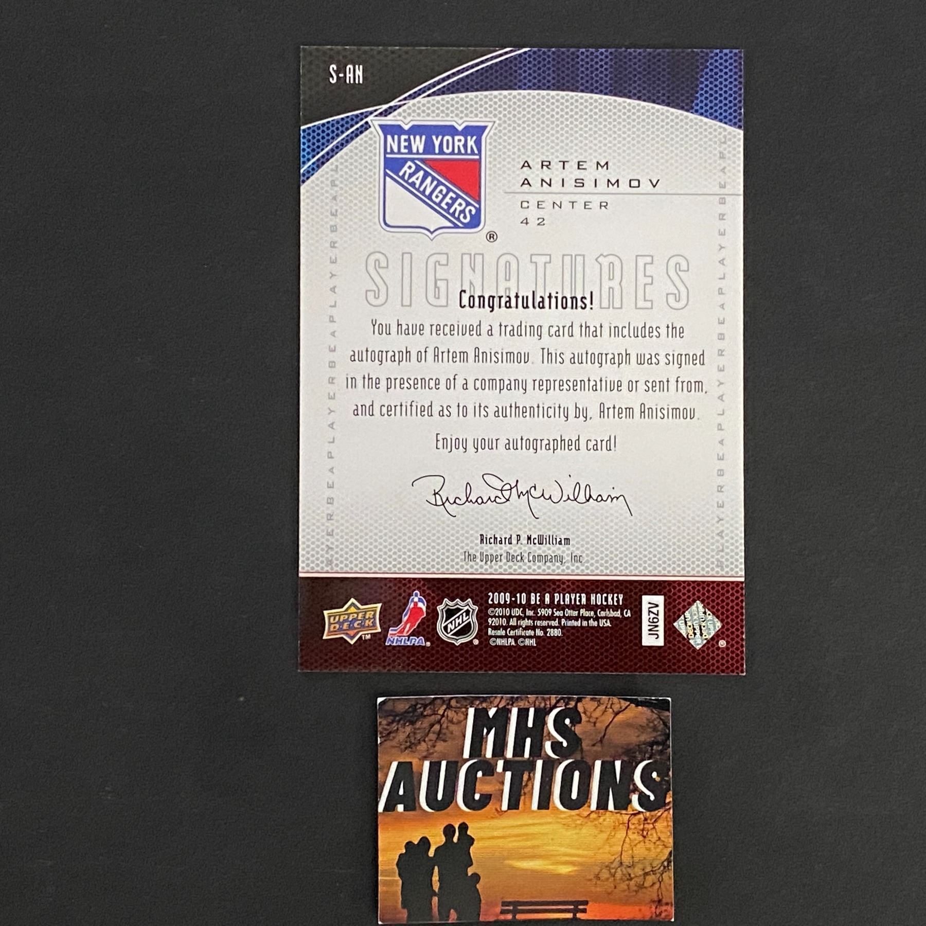ARTEM ANISIMOV 2009-10 BE A PLAYER AUTOGRAPH CARD