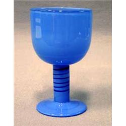 BÄGARGLAS, S.K POPGLAS, BLÅTT GLAS, DEKOR AV RÄNDER, SIGN. GUNNAR CYRÉN EXPO ORREFORS 1967, H17