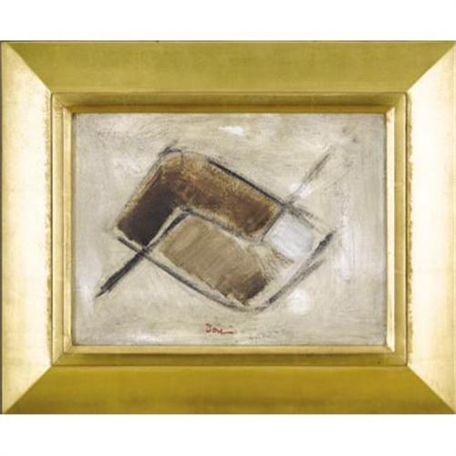 <B>ARTHUR DOVE </B></I>(American 1880-1946)<BR><I>Untitled Abstraction</B></I>, circa 1935<BR>Oil on canvasboard<BR>8-1/2 x 11-1/2 inches (21.6 x 29.2 cm)<BR>Signed lower center: <I>Dove</B></I><BR> <BR>Provenance:<BR>Salander-O'Reilly Galleries, Inc., New York, New York<BR>Cline Fine Art Gallery, Santa Fe, New Mexico<BR><BR>Exhibitions:<BR>Salander-O'Reilly Galleries, Inc., (Beverly Hills, California), 'American Modernism,' July 2-August 3, 1991, no. 53 <BR>Cline Fine Art Gallery, Santa Fe, New Mexico, 'Arthur Dove - Paintings from the 20's & 30's,' July 4-August 28, 1997. <BR><BR>Arthur Dove is generally acclaimed as the first American painter to produce purely non-representational paintings. His works were based upon natural forms and rhythms. His abstraction was "extraction," in essence, distilling the essential forms of a subject from nature. This simple composition tumbles across the panel in a pinwheel effect, using simple color and lines to simulate motion.<BR> <BR><BR><b>Shipping:</b> Requires 3rd Party Shipping (<a target="_blank" href="http://www.heritageauctions.com/common/shipping.php">view shipping information</a>)