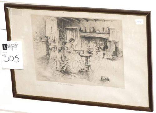 ARTHUR W. HEINTZELMAN ETCHING, Colonial Home Life, 9"x11 3/4" plate, pencil signed,, CONDITION: toning, PACKING AND SHIPPING BY FAIRFIELD AUCTION WITHIN CONTINENTAL USA (excluding insurance) $30