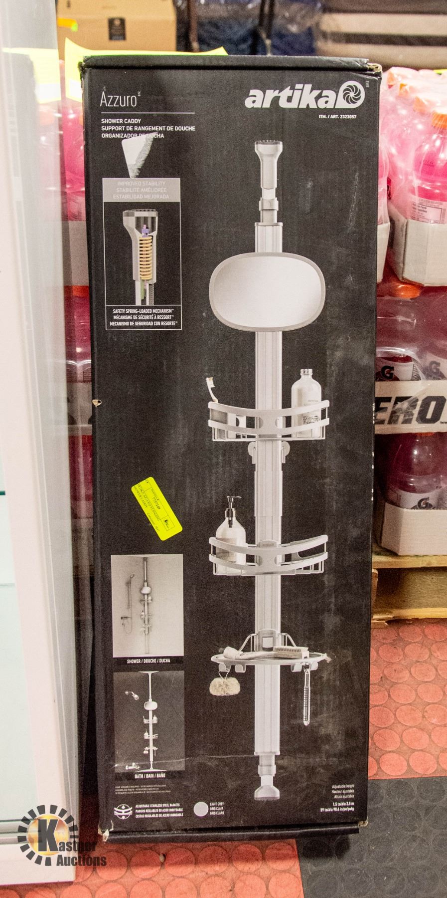 ARTIKA AZZURO STANDING SHOWER CADDY. FITS MOST SHOWERS AND BATHS. NO DRILLING OR ANCHORING REQUIRED. LOCK MECHANISM. CORROSION RESISTANT **ALL ITEMS MUST BE REMOVED BY 5PM SATURDAY, APRIL 20TH 2024. ALL REMAINING ITEMS WILL BE SUBJECT TO A $6.00 PER DAY STORAGE CHARGE. ANY ITEMS REMAINING AFTER MONDAY, MAY 13TH 2024 WILL BE CONSIDERED FORFEITED. NO REFUNDS WILL BE ISSUED FOR FORFEITED ITEMS. TO SCHEDULE A PICK UP APPOINTMENT CLICK HERE